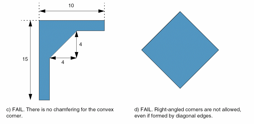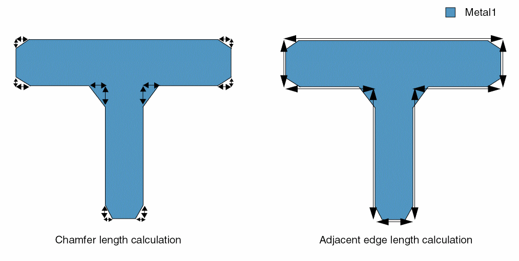 The figure below illustrates chamfer and adjacent edge lengths are calculated for convex and concave corners.