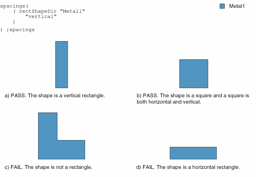 Specifies that the shapes on a layer must be rectangular. Depending on their width, these shapes can be restricted to a certain direction. A square shape is both horizontal and vertical. Optionally, narrow rectangular shapes can have small jogs.