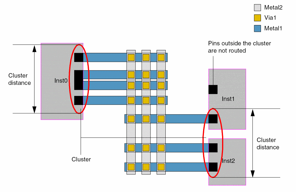 Specifies that pins at a distance less than or equal to clusterDistance from each other on a multi-pin net are clustered together for strand routing.