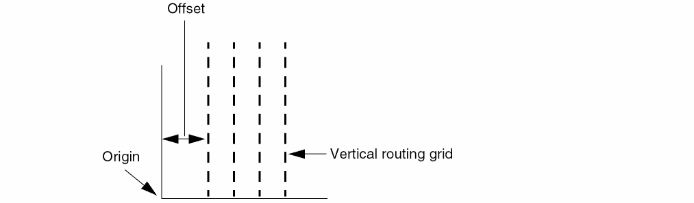 Sets the offset from the origin for the start of the vertical routing grid. A horizontal offset specified with a layer applies only to that layer. When specified without a layer, it sets the default for all layers not explicitly assigned a horizontal offset.