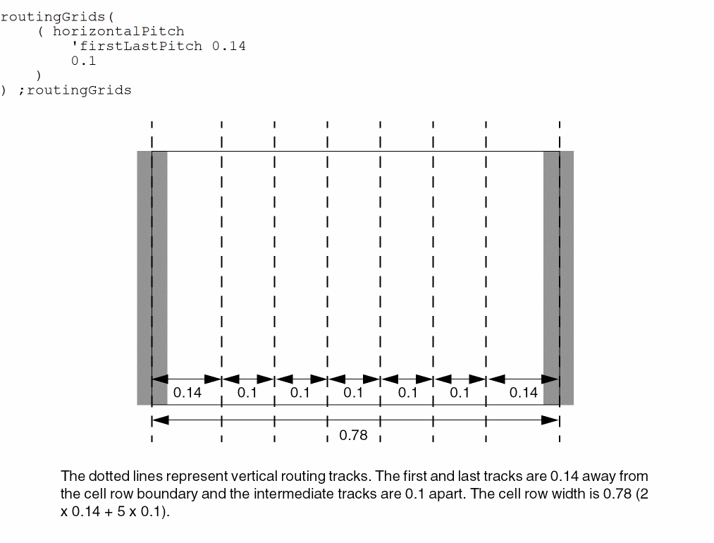 routingGrids( ( horizontalPitch [tx_layer] ['firstLastPitchf_firstLastPitch]f_pitch)
