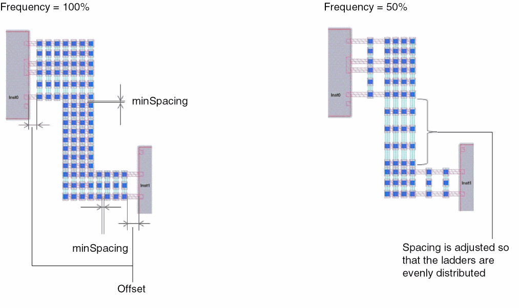 Specifies the percentage of laddering. A 100 percent is equivalent to the maximum amount of laddered routing (minSpacing) and a zero percent is equivalent to laddering at only the turns.