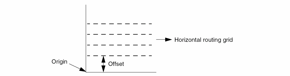Sets the offset from the origin for the start of the horizontal routing grid. A vertical offset specified with a layer applies only to that layer. When specified without a layer, it sets the default for all layers not explicitly assigned a vertical offset.