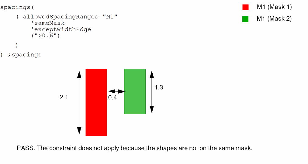 Example 7: allowedSpacingRanges with sameMask and diffMask