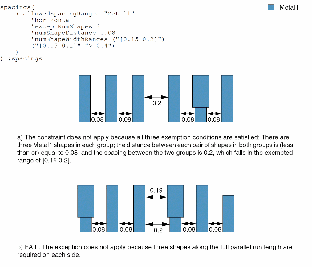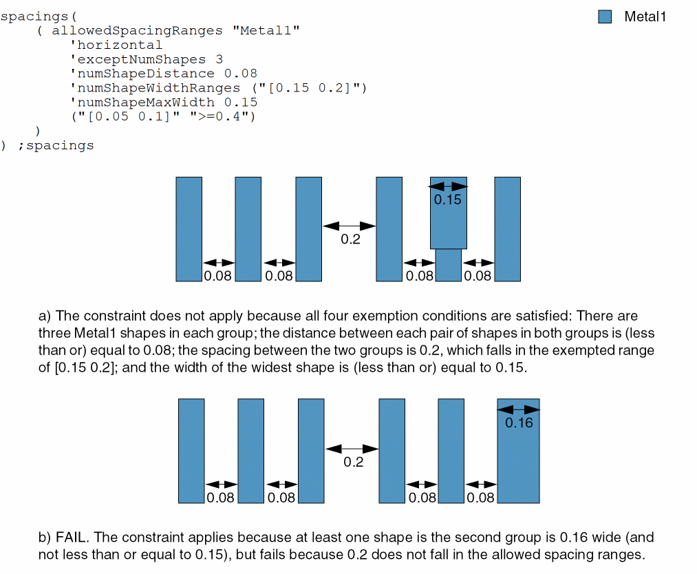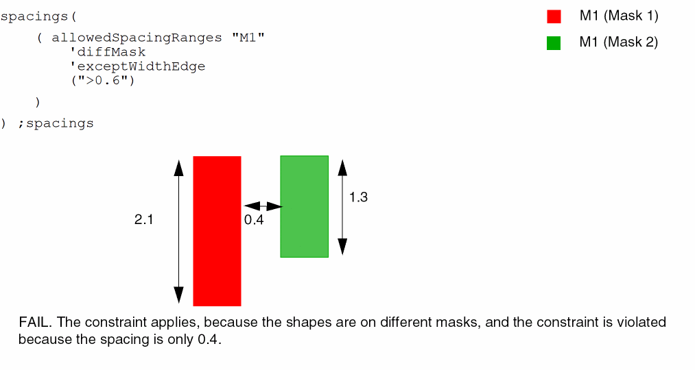 - Example 7: allowedSpacingRanges with sameMask and diffMask