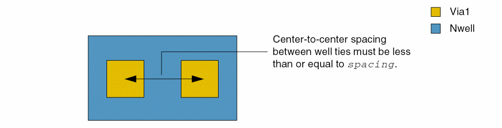 Specifies the maximum center-to-center spacing between two well ties (taps) inside a well on the specified layer. This constraint applies to cut or local interconnect layers.