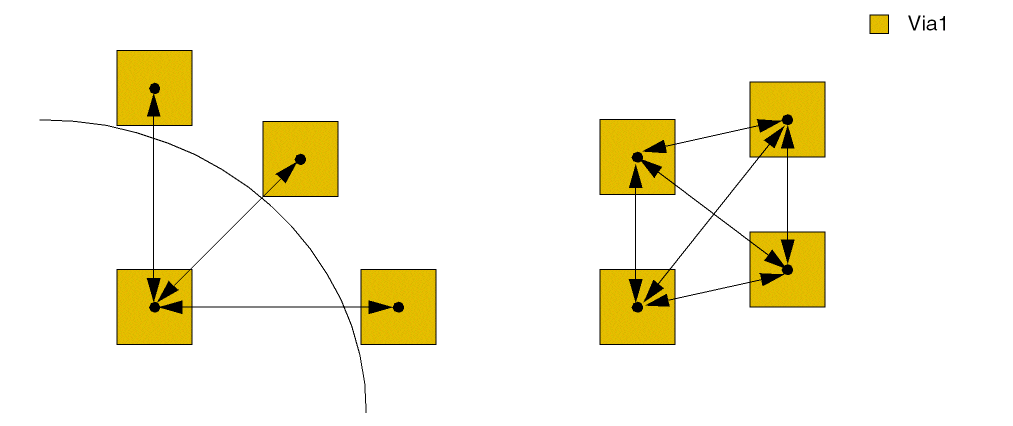 - On layer Via1, center-to-center spacing must be at least 2.0.