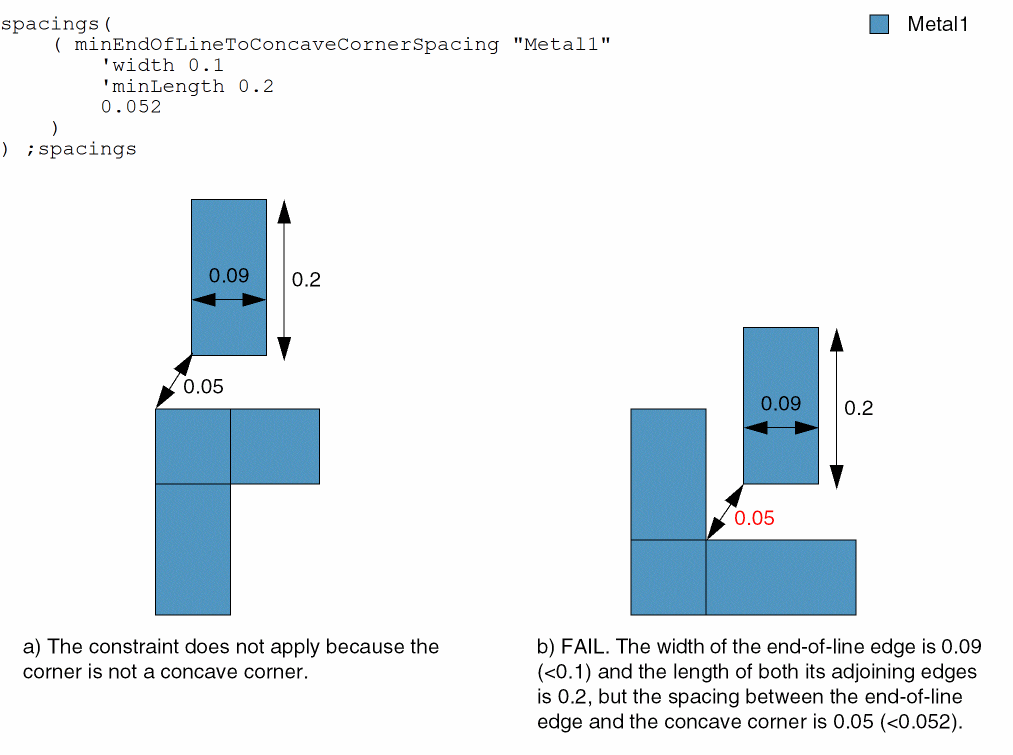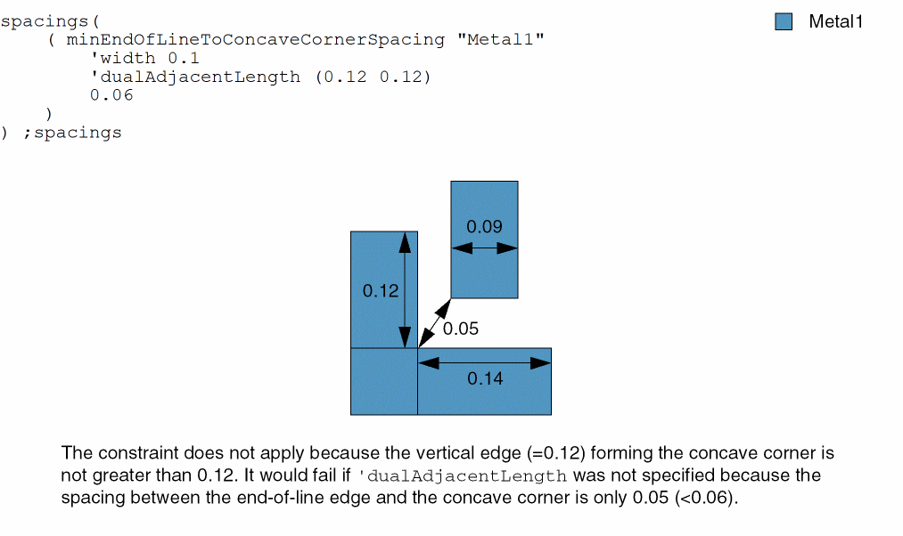 - Example 2: minEndOfLineToConcaveCornerSpacing with width and dualAdjacentLength