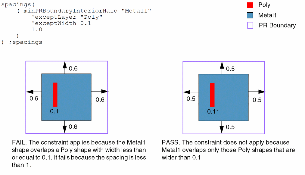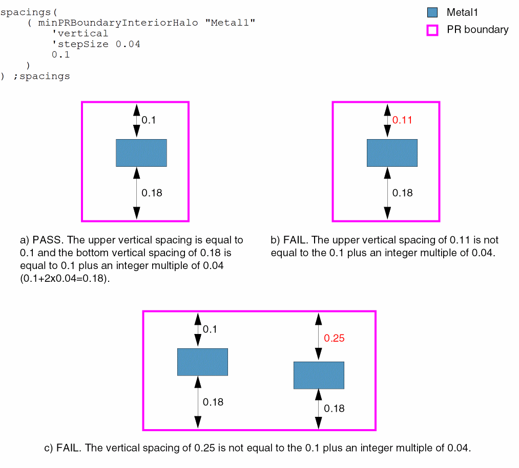 spacings( ( minPRBoundaryInteriorHalotx_layer['horizontal | 'vertical] ['stepSizef_stepSize] ['exceptLayertx_exceptLayer'exceptWidthf_exceptWidth]f_spacing['coincidentAllowed] )