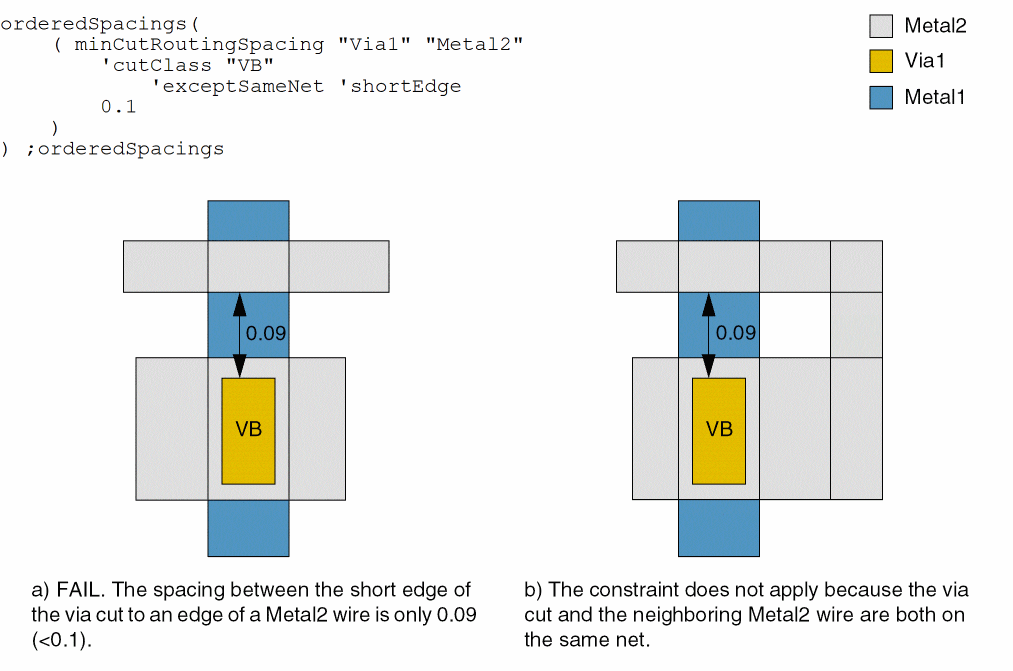 - Example 1: minCutRoutingSpacing with cutClass, exceptSameNet and shortEdge