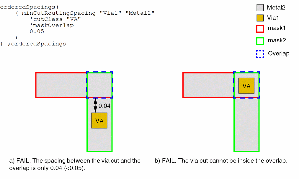 - Example 4: minCutRoutingSpacing with cutClass and maskOverlap