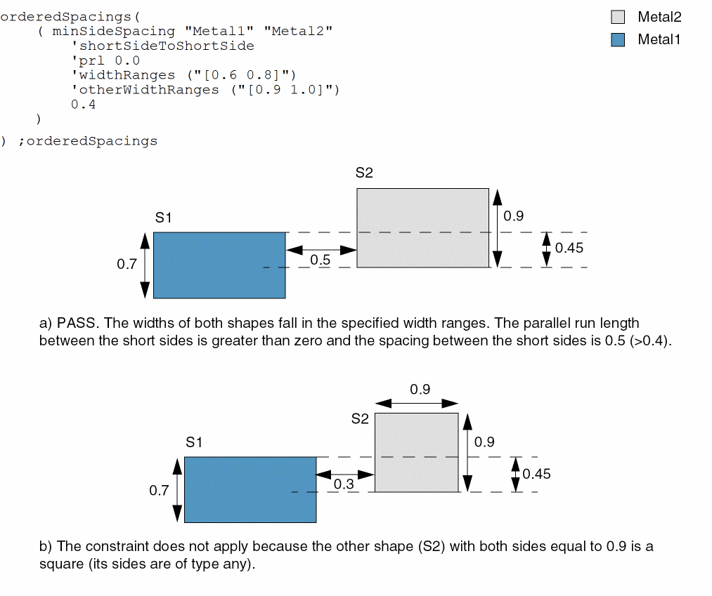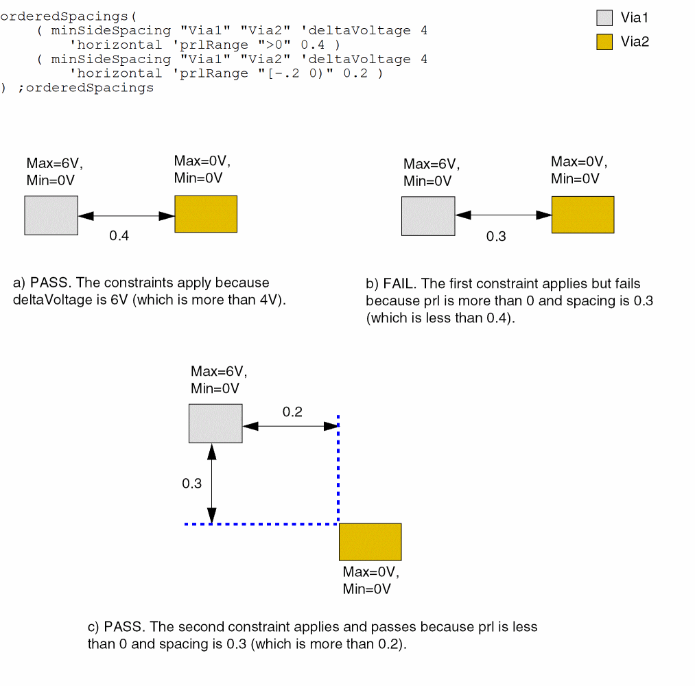 - Example 3: minSideSpacing with deltaVoltage and prlRange