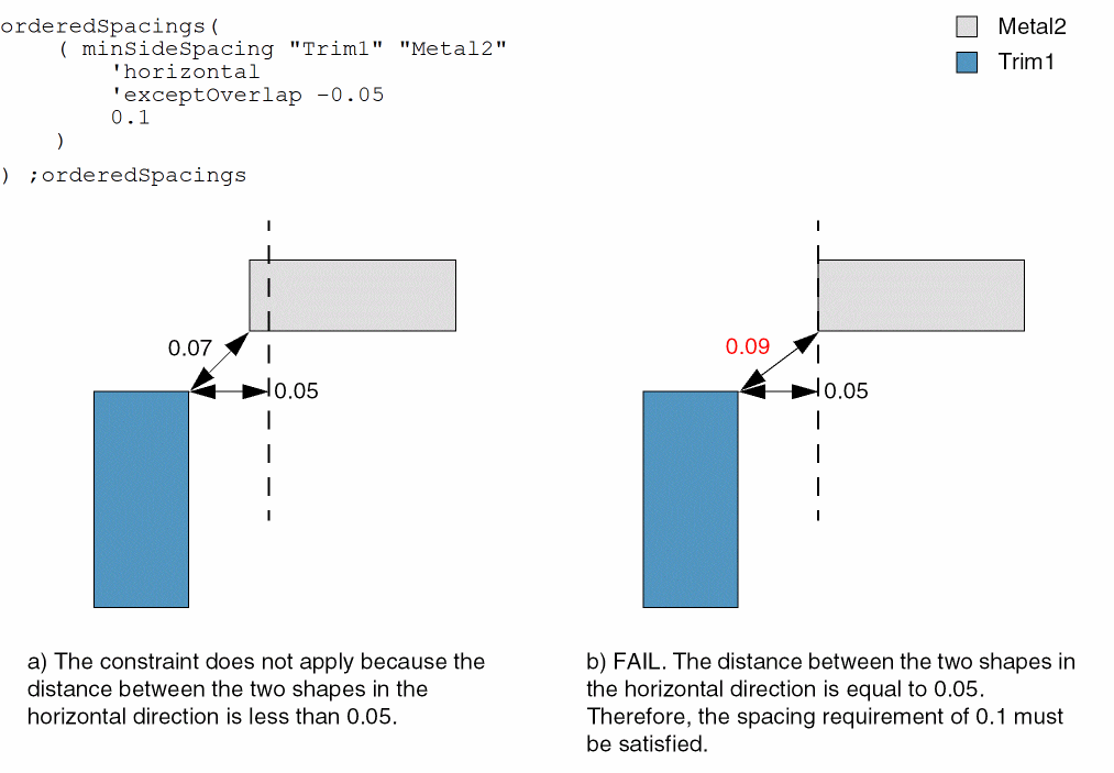 Example 2a: minSideSpacing with exceptOverlap