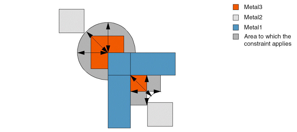 When only spacing is specified, the area to which the constraint applies is determined as shown in the following figure.