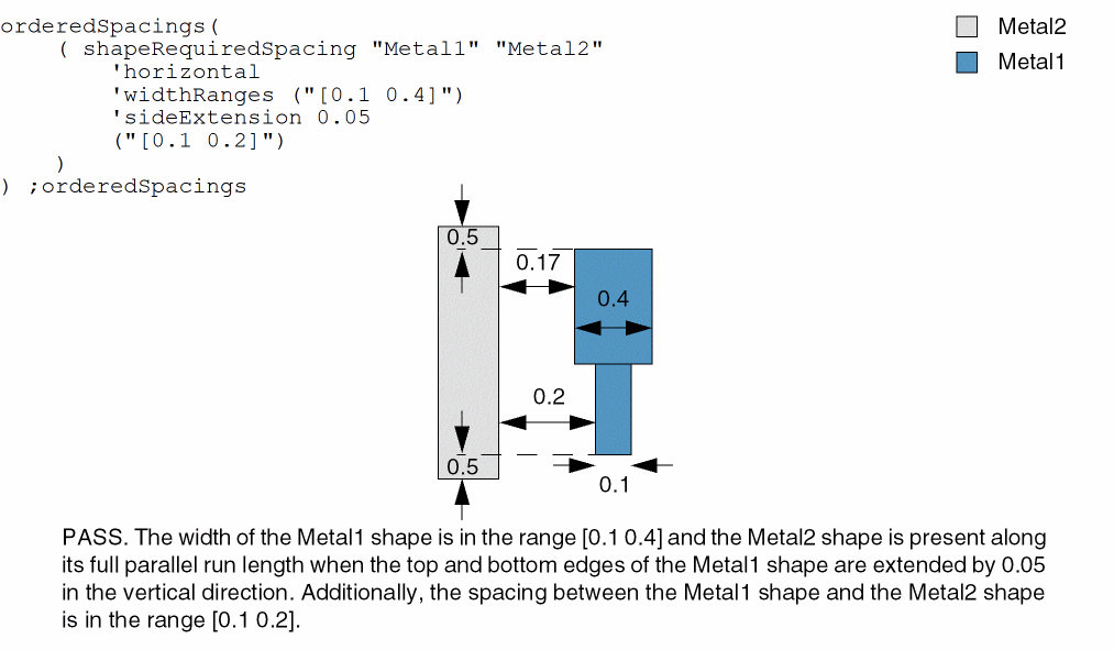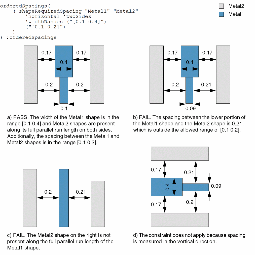 orderedSpacings( ( shapeRequiredSpacingtx_layer1tx_layer2'horizontal | 'vertical ['twoSides] ['widthRanges (g_widthRanges)] ['sideExtensionf_sideExt] (g_ranges) )