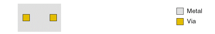 Specifies the minimum spacing between via cuts that are on the same net, metal, or via. The required spacing can be independent of the width of the enclosing metal shape or can be dependent on the width of the enclosing metal shapes on the layers above or below, or both. If the enclosing metal shape is rectilinear, the width of the narrowest portion of the shape is considered.