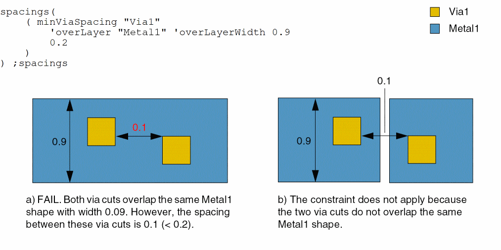 - Example 1: minViaSpacing with overLayer and overLayerWidth