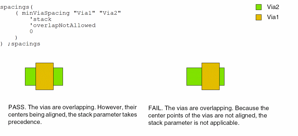 - Example 3: minViaSpacing with stack and overlapNotAllowed