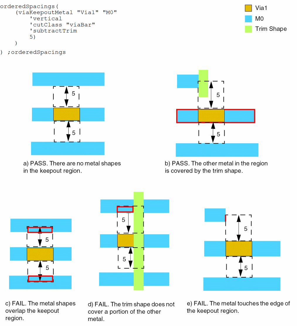 orderedSpacings( ( viaKeepoutMetaltx_cutLayer tx_metalLayer'horizontal | 'vertical ['subtractTrim] ['cutClass {f_cutWidth| (f_cutWidthf_cutLength) |t_name}]f_extension)