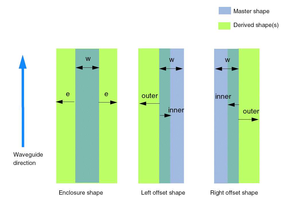 (Virtuoso Photonics Option) Defines a template or a series of templates that specify waveguide objects. In Photonic Integrated Circuits, a waveguide is a 3D structure built as a vertical stack of shapes on neighboring layers. One of the layers forms the master, and the shapes on the other layers are relative to the master with some enclosure or offset.