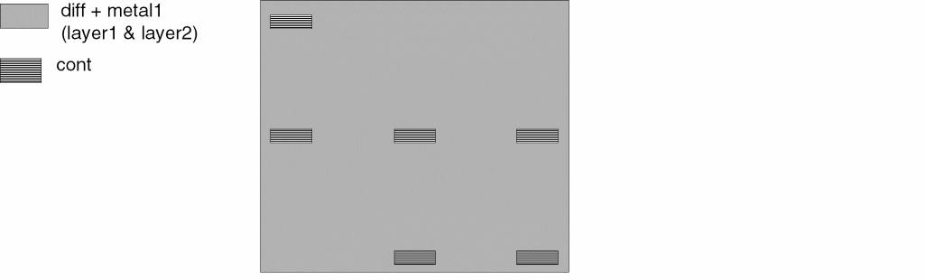 The first line in the following example defines a rectangle on the gate layer. The second line defines a rectangle of the same size on the diffusion layer. Together, these two rectangles make up the active area of the transistor.