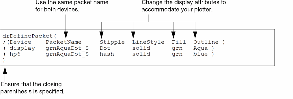 drDefinePacket( (t_displayNamet_packetNamet_stippleName t_lineStyleNamet_fillColort_outlineColor[t_fillStyle] ) …