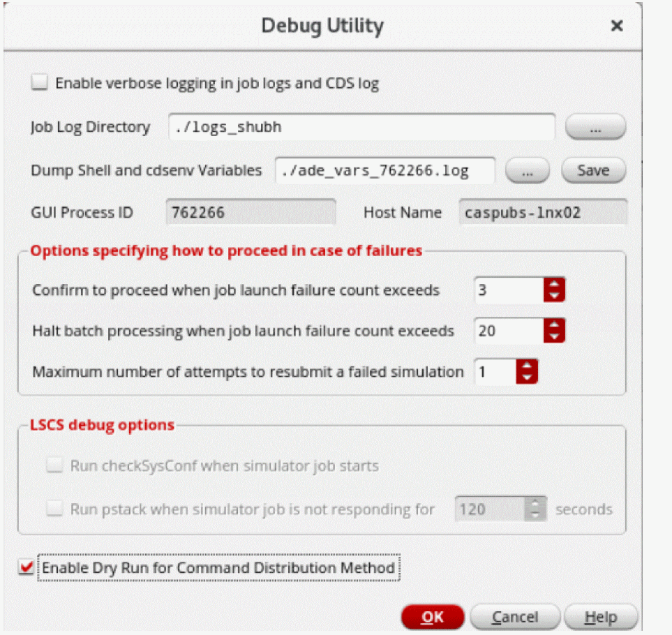 The Debug Utility form provides debugging options that help you gather information to o analyze when troubleshooting simulation runs.