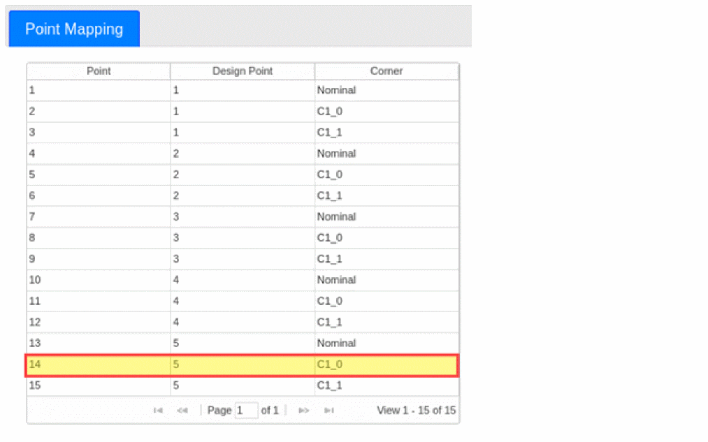 The Point Mapping pane lets you map the points reported in the Details pane to the points in the Results tab in ADE Assembler. This information is displayed in tabular format and lets you easily identify the source of the issue. This table has three columns.