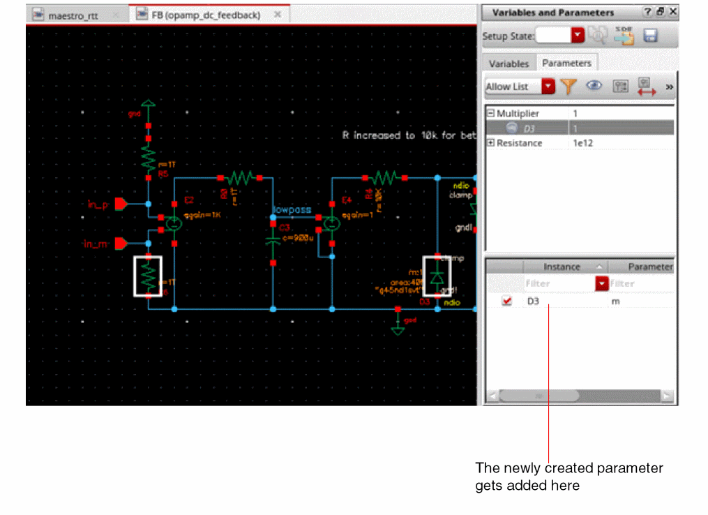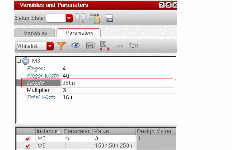 For example, suppose the parameter AD of a MOS transistor is a function of its channel width. You could define AD in the Schematic window using the Edit – Properties command as