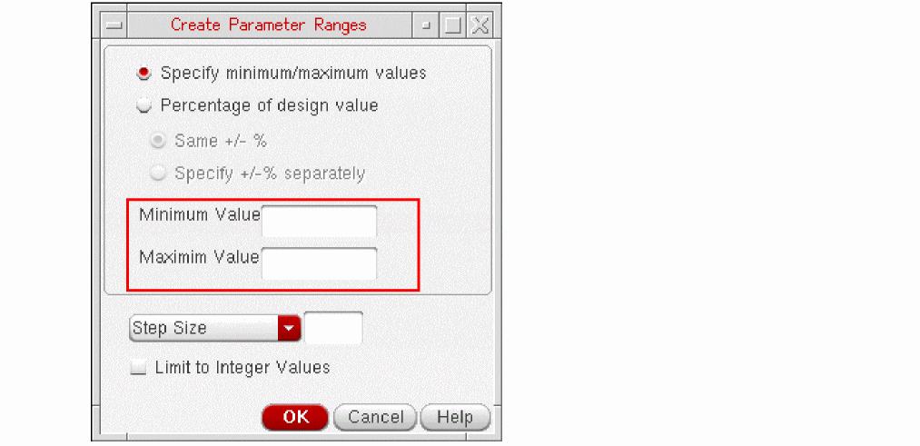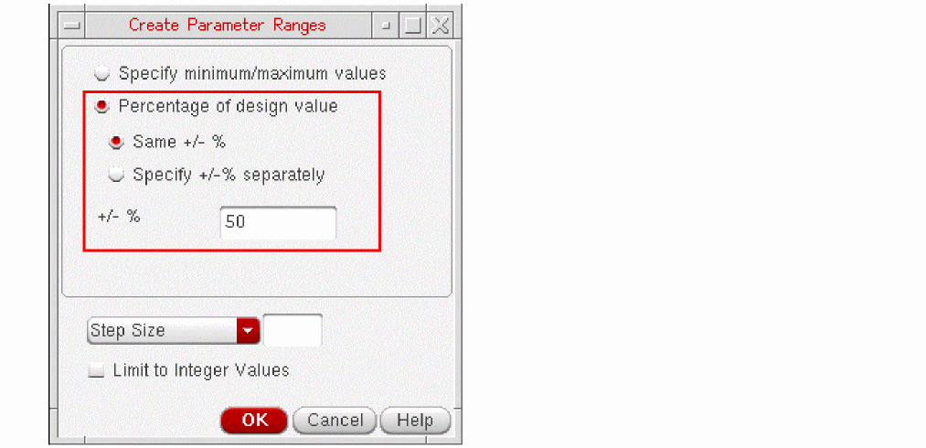 If required, you can specify multiple values, a range, or an inclusion or exclusion list for a design variable. For details, refer to Adding or Changing a Variable or Parameter Specification. -