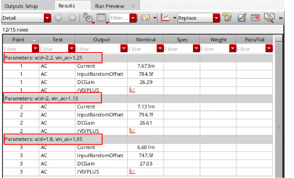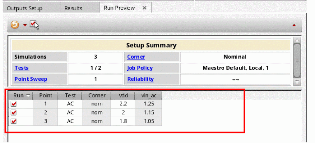 When a global variable is disabled for a test and the design variable uses sweep values, separate design points are created for that test on the Results tab. For more details on the results display, see Viewing Simulation Results When Design Variables Use Swept Values.