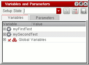 On the Variables tab of the Variables and Parameters pane, right-click the test and choose Add Variable.