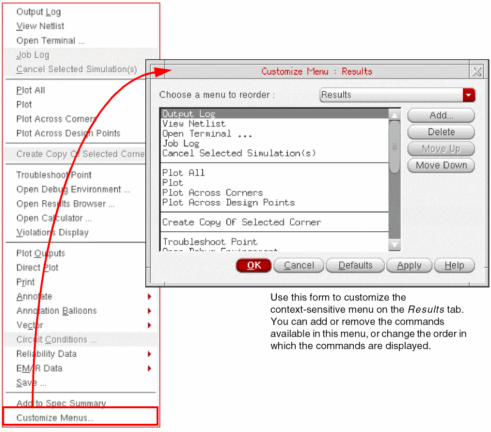 The Results tab of the Outputs pane allows you to view simulation results. For more information about using the Results tab, see Chapter 19, “Viewing, Printing, and Plotting Results.”