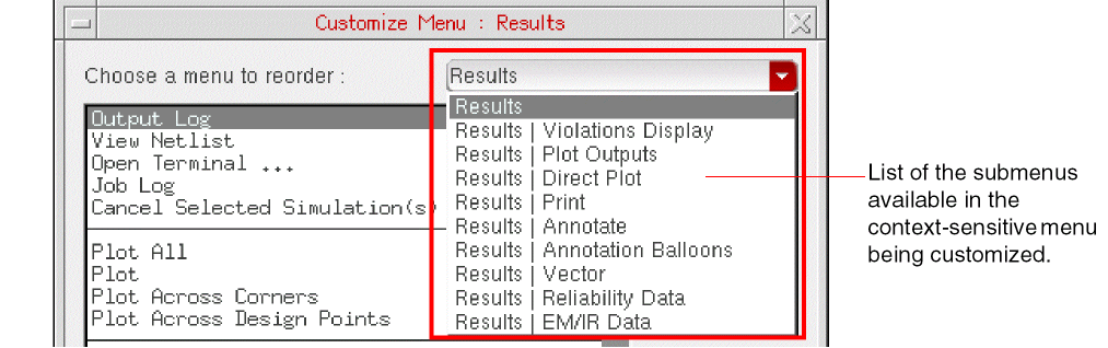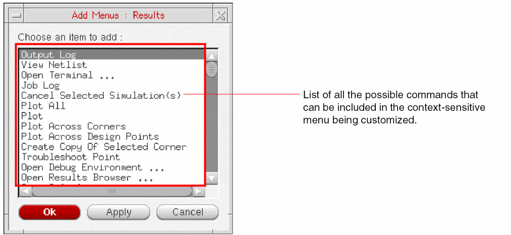 To avoid this, ADE Assembler now uses a local directory, named as /tmp, to temporarily save the results database. This avoids the NFS file lock issues and centralizes access to the .rdb file because it can be accessed only through the ADE Assembler UI. In addition, it uses a separate backup thread to copy the results data from the /tmp directory to the permanent results database, the location specified by the ADE Assembler Results Database Location field. ADE Assembler saves a .rdb file in the libraryName/cellName/viewName/results/data directory under the specified location.
