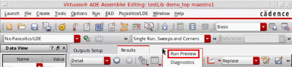 By default, the program writes the results database and run log files to libraryName/cellName/viewName/results/data in the ADE Assembler view. For more information about the maestro view, see Directory Structure of a Maestro Cellview.