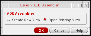 - On the Launch ADE Assembler form, select Open Existing View.
