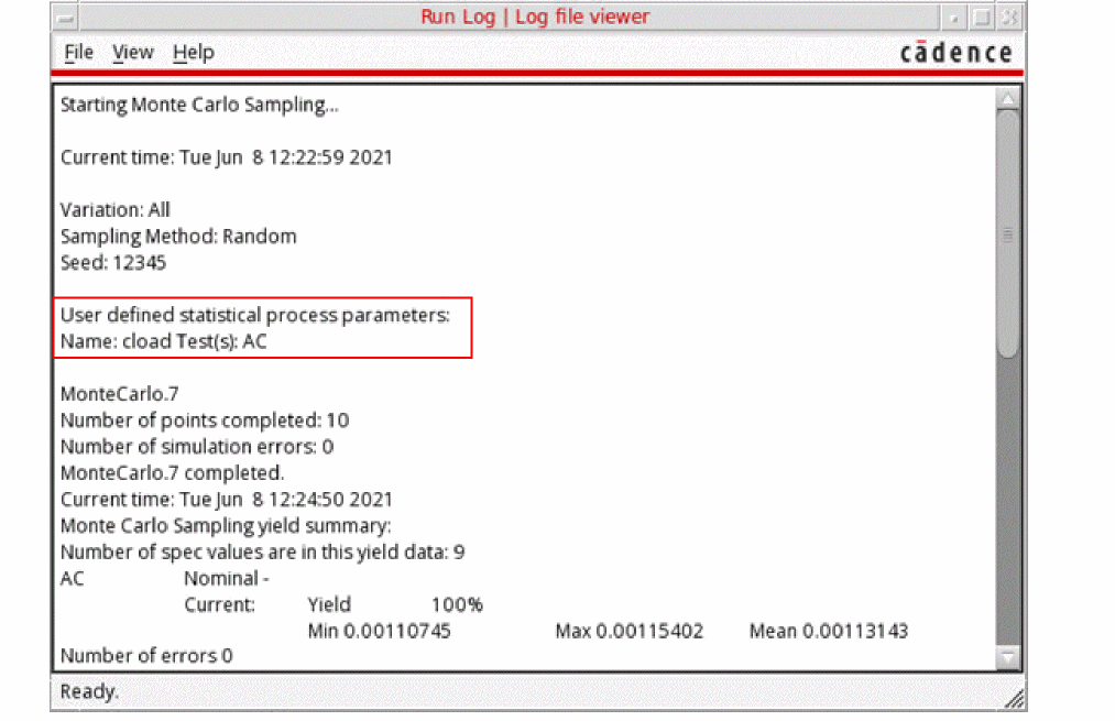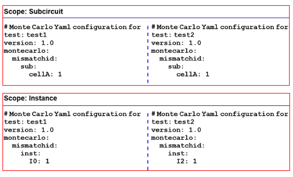 During Monte Carlo analysis, Spectre generates random parameter values based on the defined model distributions. Circuit calibration and yield estimation in a multi-test setup require that identical mismatch variation is applied to the design under test for each Monte Carlo sample point.
