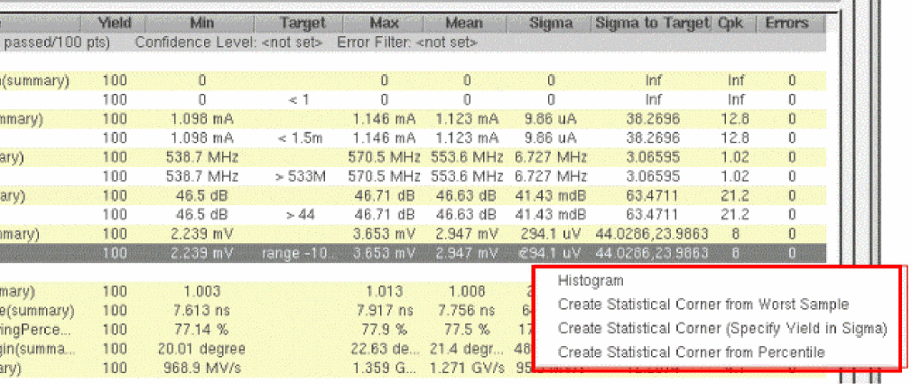 Virtuoso Variation Option license. For more information, see The K-Sigma Corners Method in Virtuoso Variation Aware User Guide.Displaying Statistical Parameters of Statistical Corners