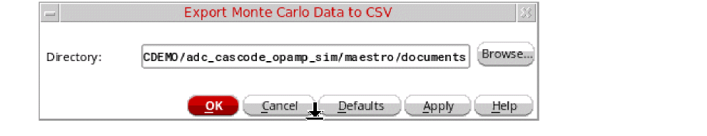 After a Monte Carlo run is complete, you can save the results in CSV format. ADE Assembler saves the results for each corner in a separate.csv file. For this, do the following: