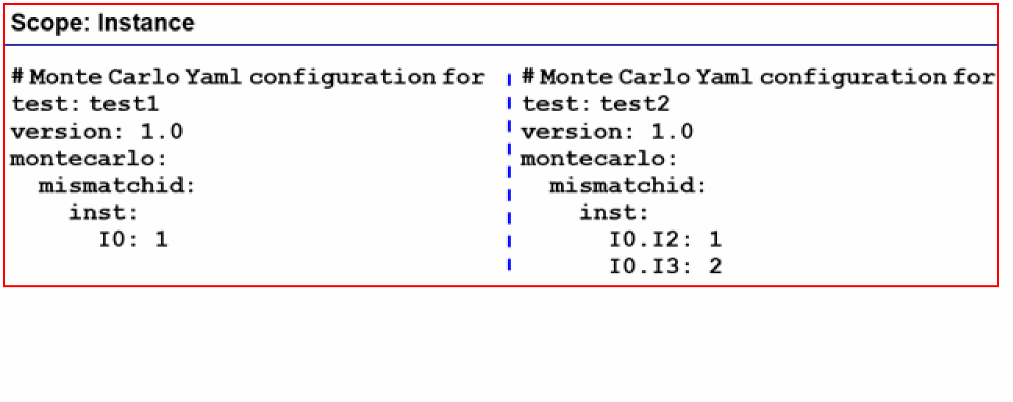 When you run Monte Carlo analysis after specifying mismatch ID, a configuration file with the name mc.yaml is created in the netlist directory of the simulation run.