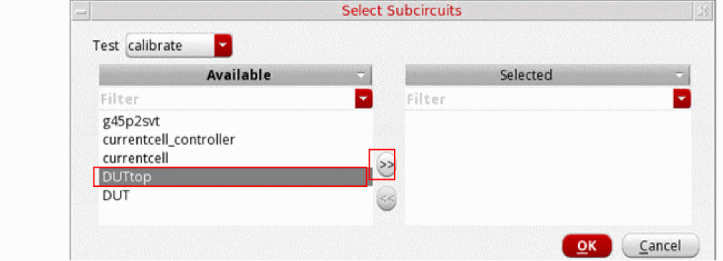 On the Select Subcircuits form, from the list of available subcircuits, select a circuit and then click >> to add it to the selected list. Click OK to return to the Mismatch ID form.