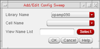 To sweep the view for a cell, you need to define a global variable prefixed with CONFIG. The value of this global variable is a list of view names from the config view. These view names are swept during simulation. The following sections describe how to create config sweep variables or import config sweeps from the parasitic setup, and how to view these variables on the Run Preview tab or the simulation results: