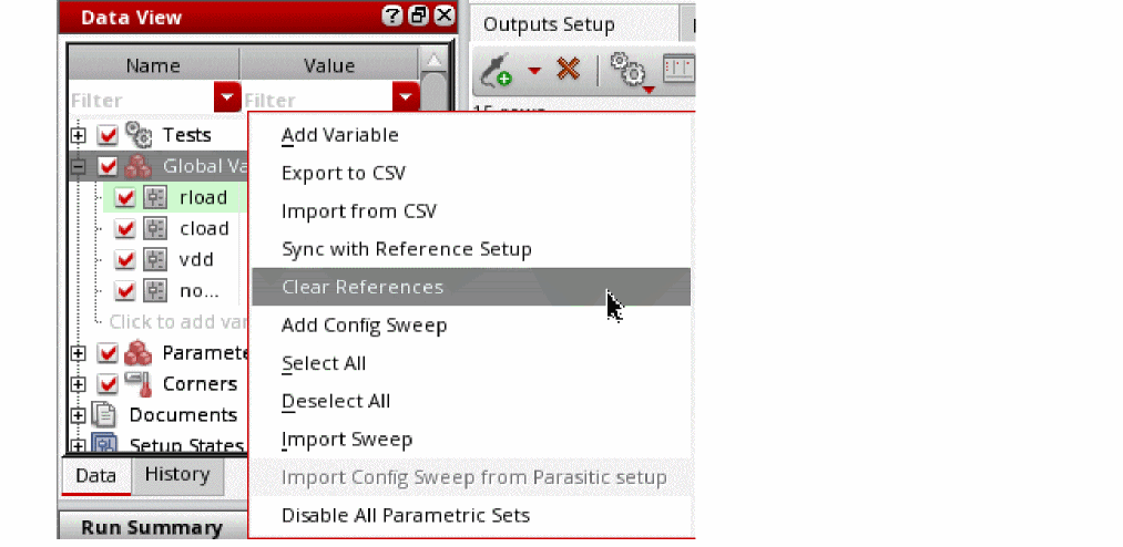 There can be scenarios when you want to remove any references to the sweep, corner, or reliability setup to meet the following requirements: