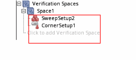 A verification space is a combination of sweep and corner values that you specify in the Setup Library assistant. You can assign these verification spaces to different design blocks and use them to calculate the coverage.