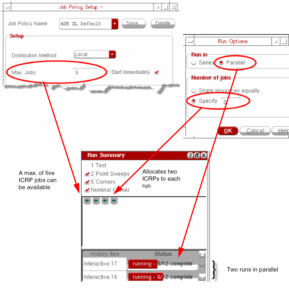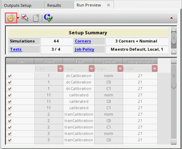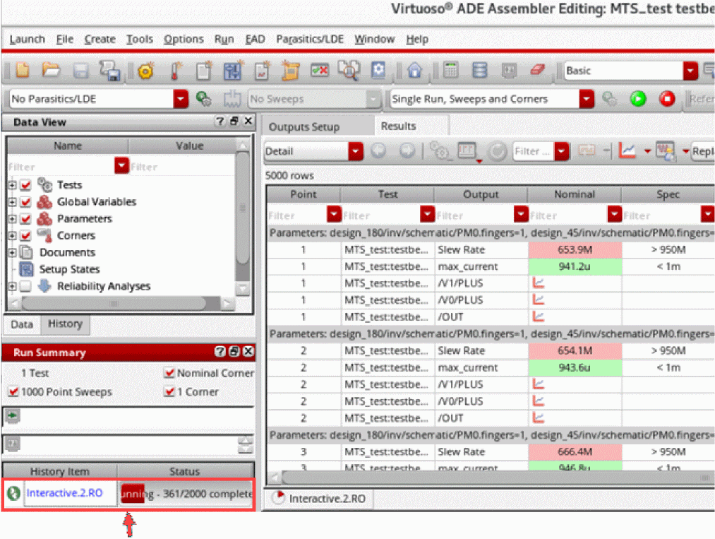 In OCEAN XL, you can simultaneously run multiple simulation runs for an maestro view. You can do this by executing multiple