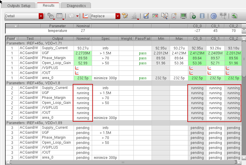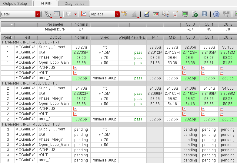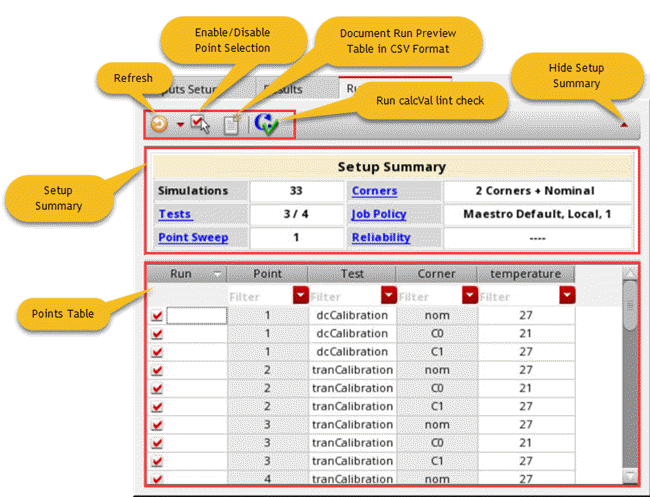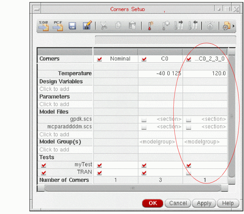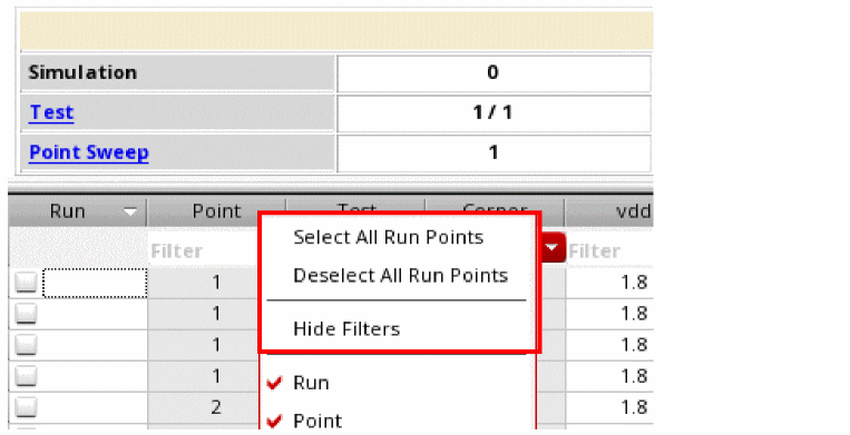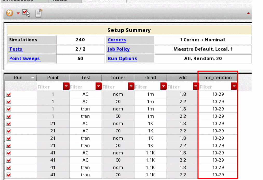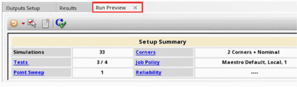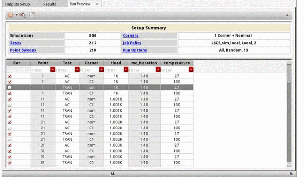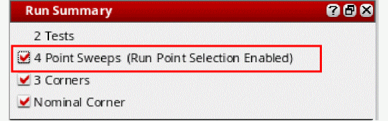- Number of tests, sweep points, and corners