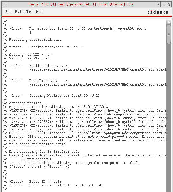If you have an already generated netlist of a design, you can provide the path to that netlist file to the design OCEAN command. By doing this, you can run a simulation without loading/ requiring the complete design hierarchy. Later, you can view the simulation results in ADE Assembler user interface. For more details, refer to Viewing Results of Simulations Run using OCEAN Scripts.