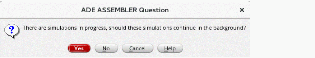 If you exit the maestro cellview or the Virtuoso session before the simulation is complete, ADE Assembler displays a dialog box, asking you to confirm whether to continue the simulation.