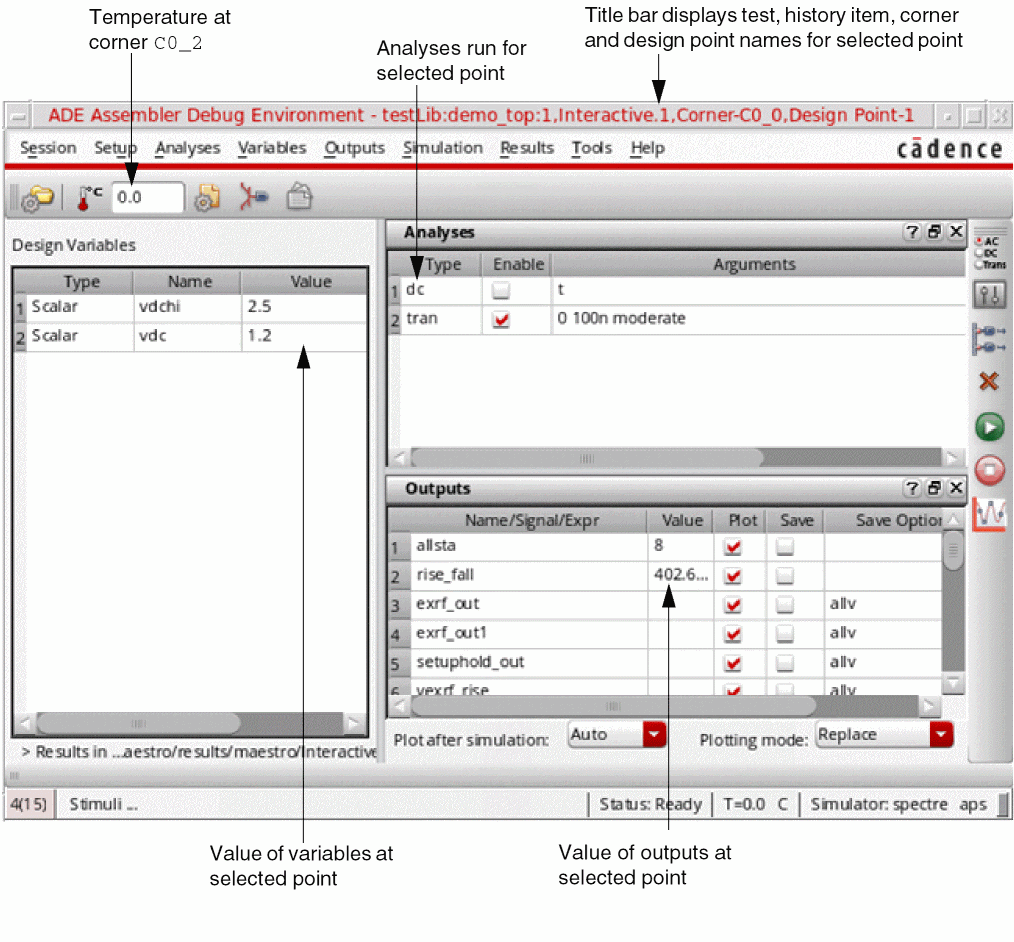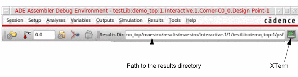 The results location corresponds to the lib/cell/view specified in theocnxlTargetCellViewcall, such asocnxlTargetCellView( "rfExamples" "ne600" "adexl")