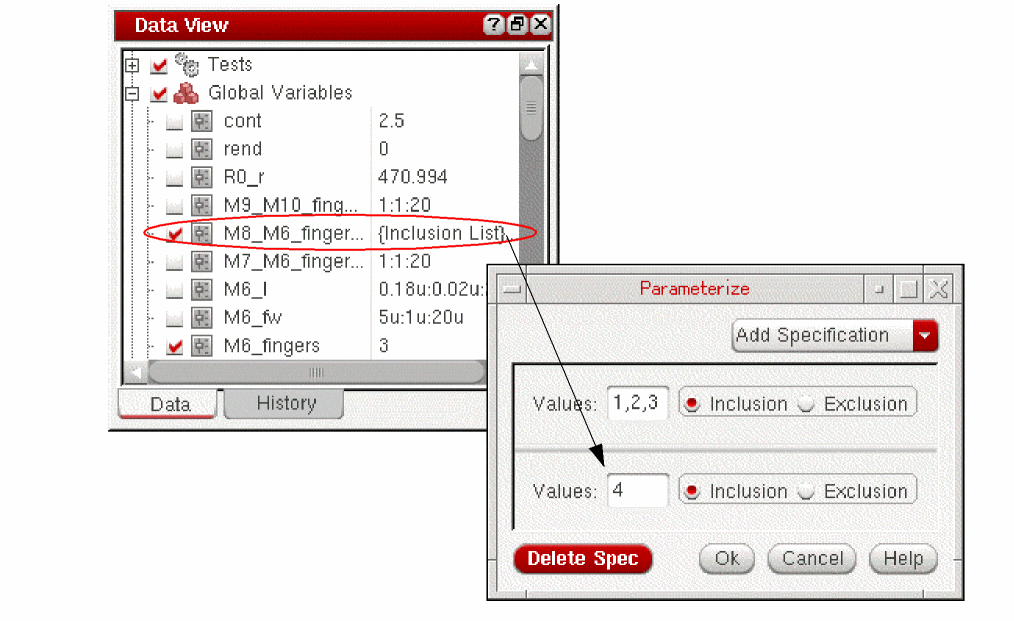 4specified for the sweep global variableM8_M6_fingers_ratiois included in the sweep range for the variable.